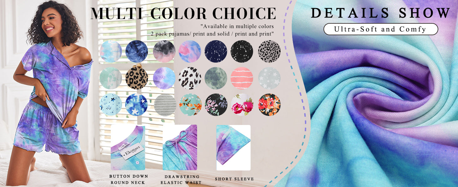 Ekouaer 2 Pack Womens Pajama Sets Short Sleeve Top with Shorts Soft Comfy Loungewear Sleepwear