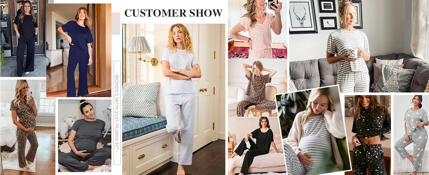 Ekouaer 2 Pack Womens Pajama Sets Short Sleeve Tops and Long Pants Casual Comfy Pjs Lounge Set with Pockets