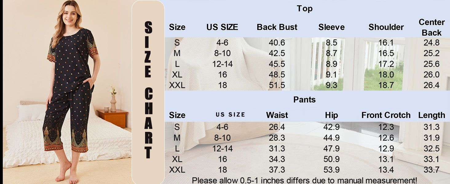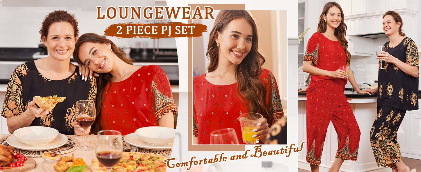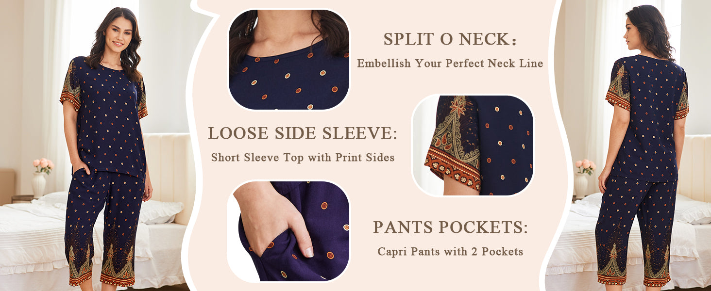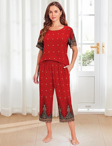 Ekouaer 2 Piece Women's Short Sleeve Capri Lounge Set Soft Mumu Pajama Sets with Pockets Loose Sleepwear Lightweight Homewear