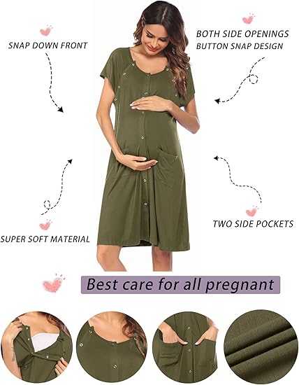 Ekouaer 3 in 1 Labor/Delivery/Hospital Gown Nursing Dress Maternity Nightgown Sleepwear for Breastfeeding with Button