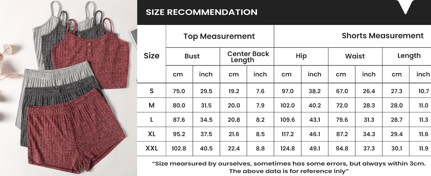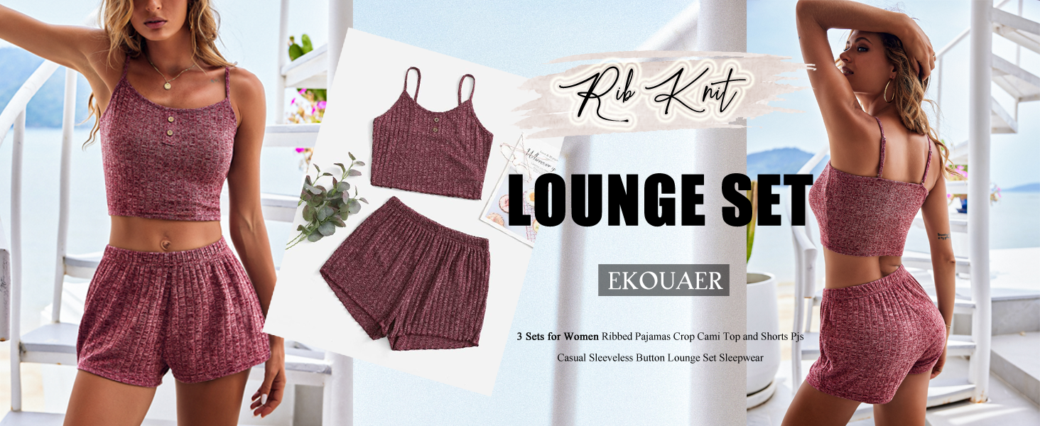 Ekouaer 3 Sets for Women Ribbed Pajamas Crop Cami Top and Shorts Pjs Casual Sleeveless Button Lounge Set Sleepwear