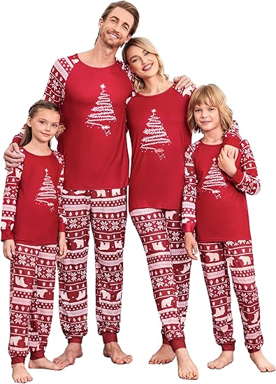 Ekouaer Christmas Pajamas for Family Long Sleeve Pjs Matching Sets with Plaid Pants Soft Sleepwear Loungewear
