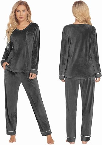 Ekouaer Couples Matching Pajamas Sets Velvet PJs Set for Men and Women Velour Long Sleeve Sleepwear