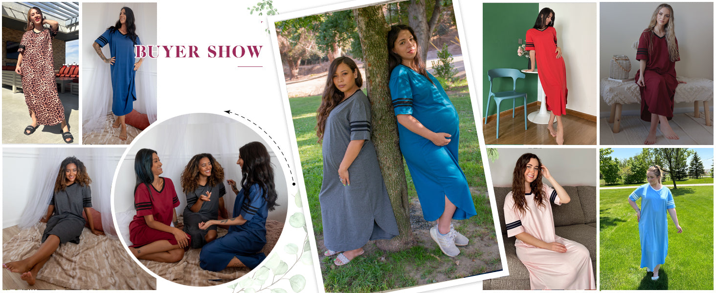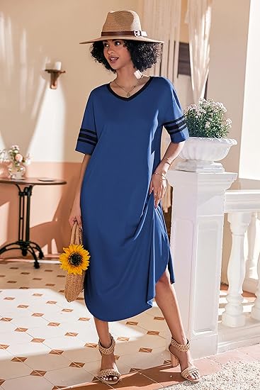Ekouaer Long Nightgown, Womens V Neck Loungewear Oversized Sleepwear Loose Sleep Dress