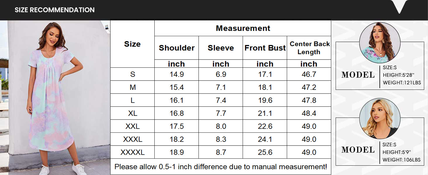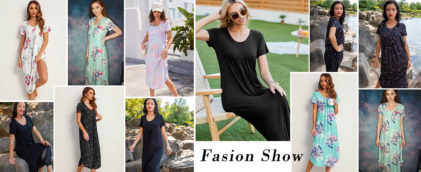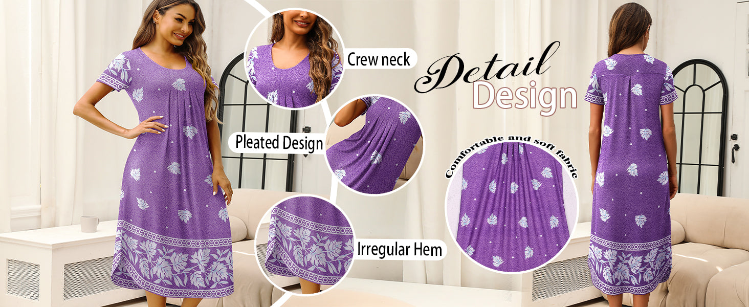 Ekouaer Long Nightgowns for Women House Dress Plus Size Sleepwear Pleated Full Length Loungwear