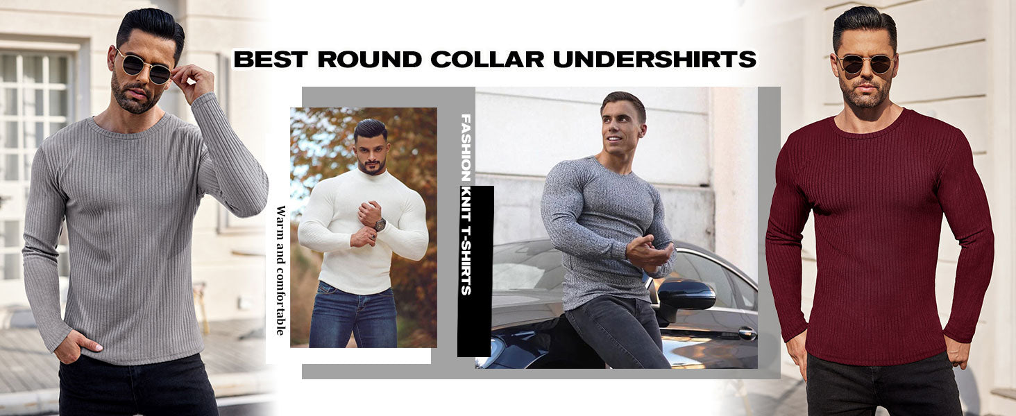Ekouaer Men's Long Sleeve Shirts Ribbed Pullover Tees Sim Fit Thermal Tops Crew Neck Stretchy Undershirts