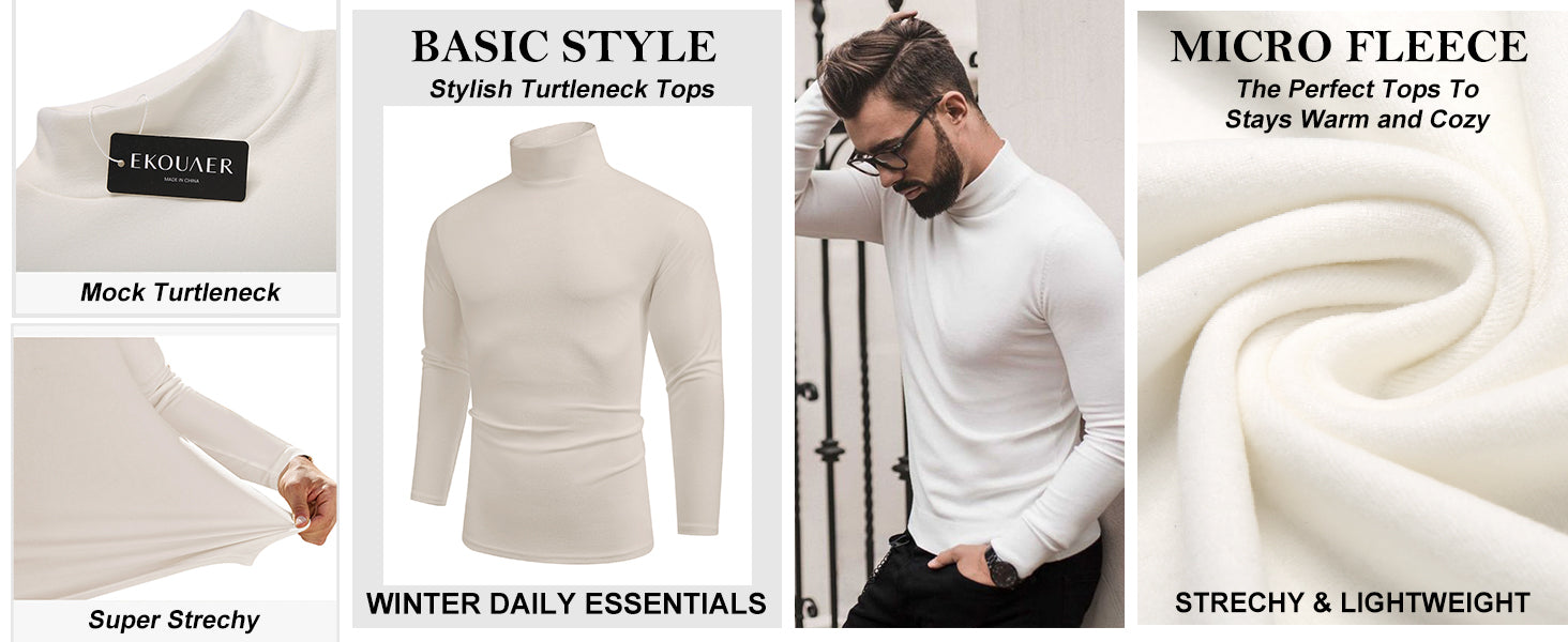 Ekouaer Men's Mock Turtleneck Long Sleeve Turtle Neck Tops Lightweight Undershirt Thermal Sweater Shirts