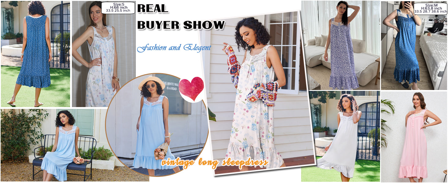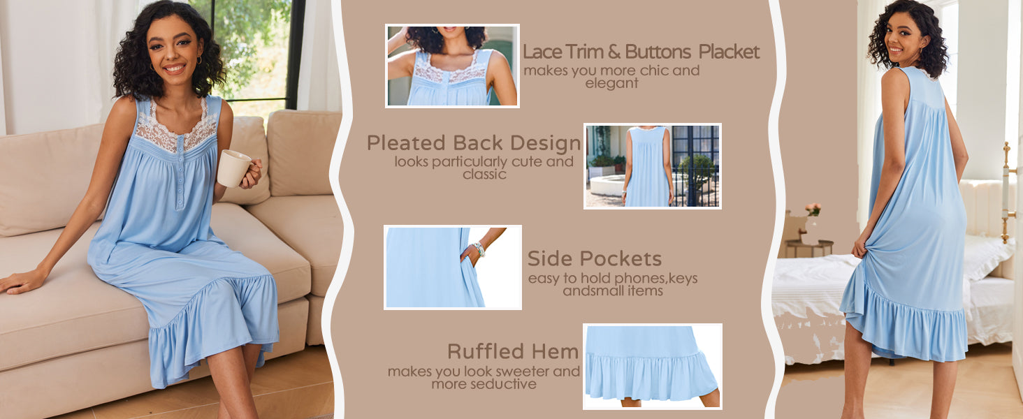 Ekouaer Nightgowns for Women Sleeveless Night Gown Victorian Sleep Shirt with Pockets Ladies Pajamas Lace Trim Sleepwear
