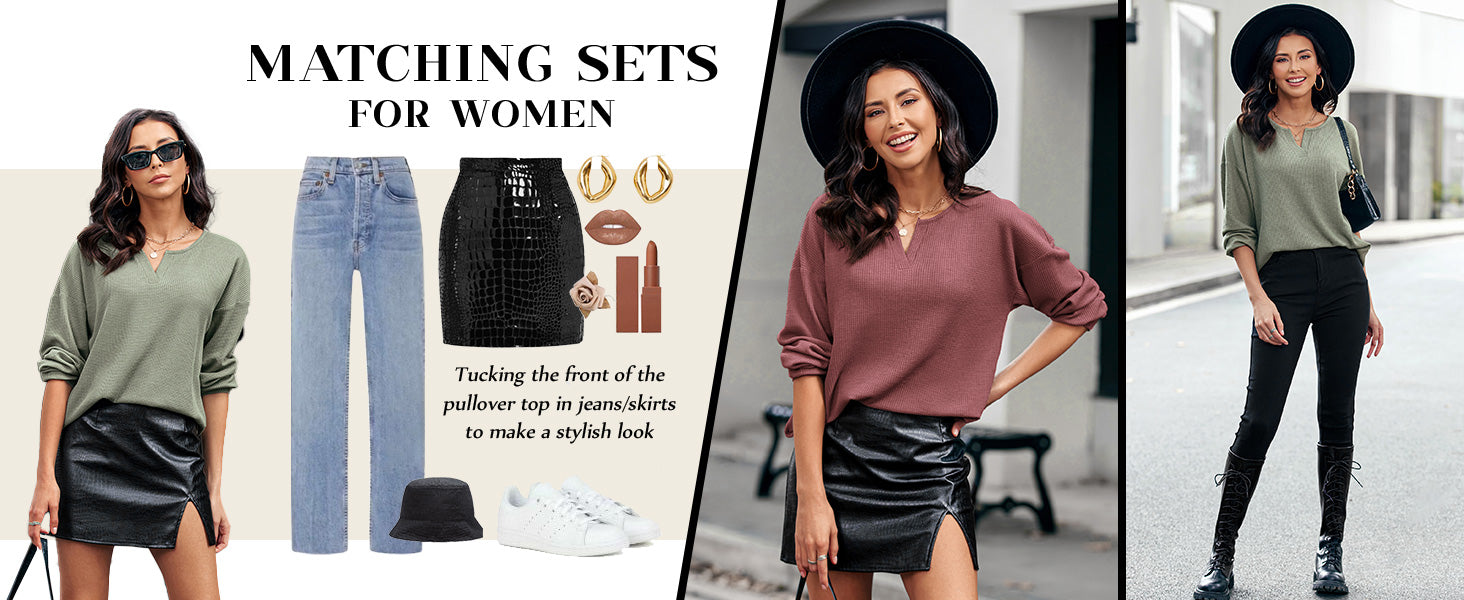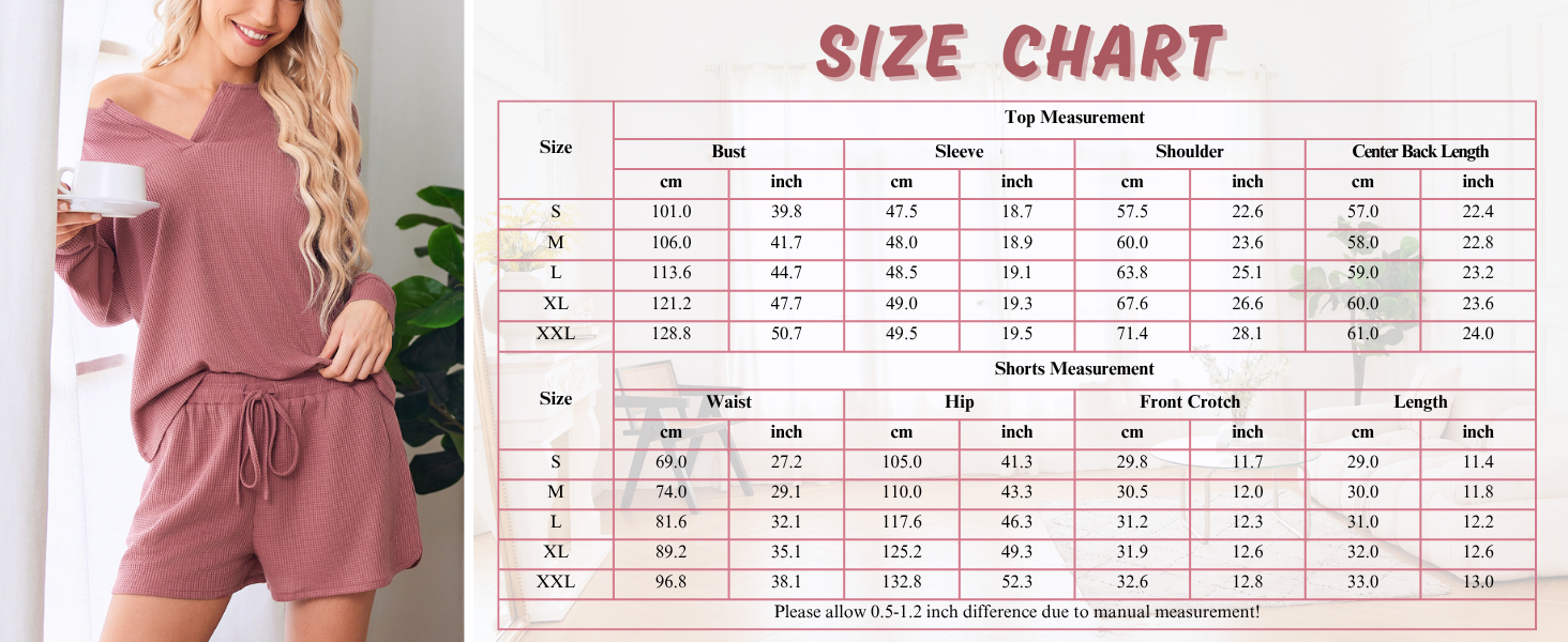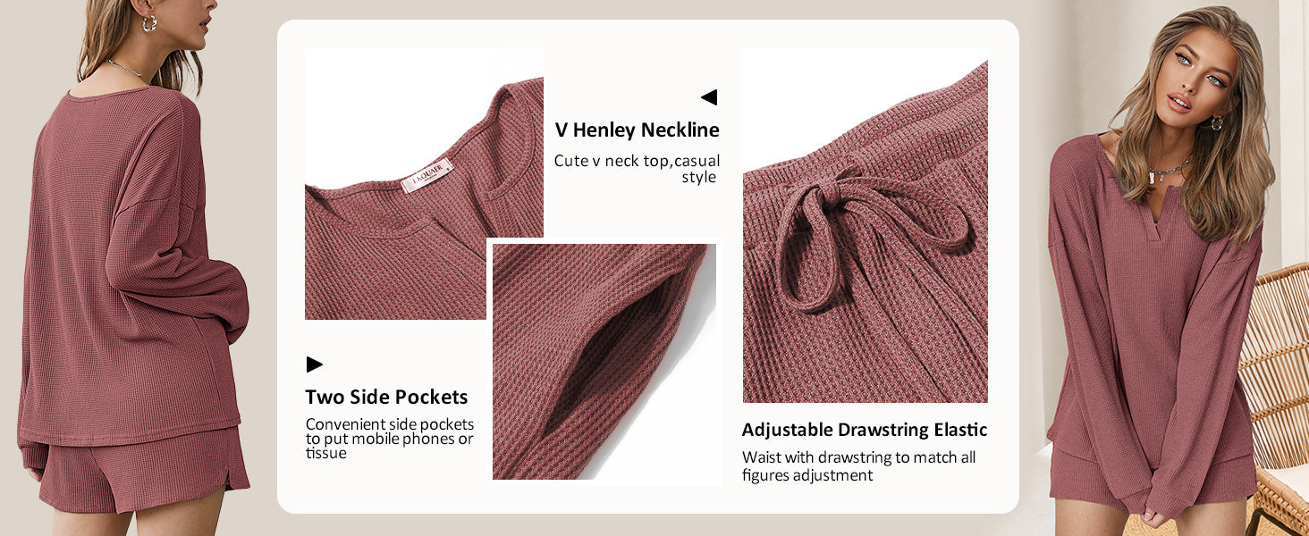 Ekouaer Pajama Set for Women Waffle Knit Lounge Sets Long Sleeve Top and Shorts Sleepwear Matching Loungewear