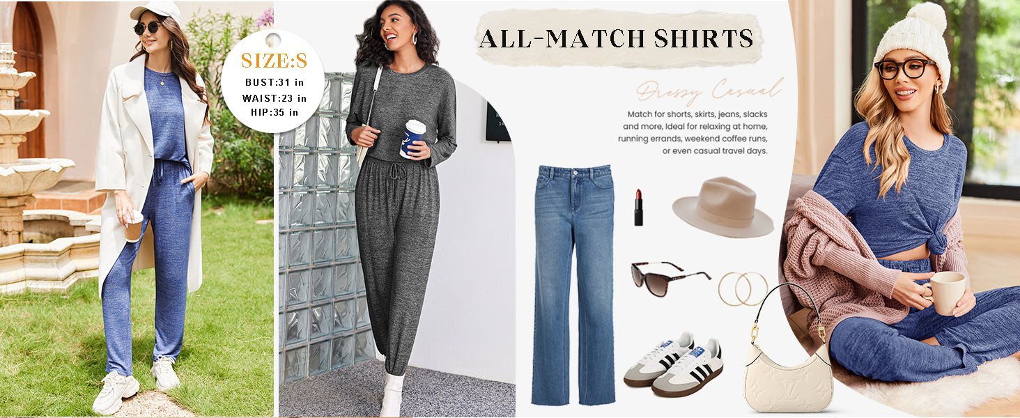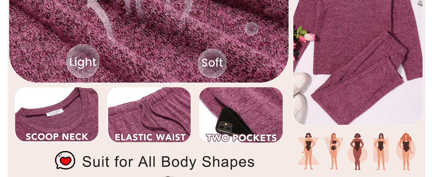 Ekouaer Pajama Set Womens Long Sleeve Sleepwear Pullover Top and Pants Cozy Loungewear Soft Pjs Lounge Set with Pockets