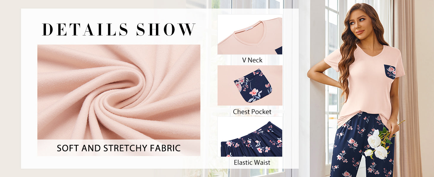 Ekouaer Pajama Sets for Women 2 Piece Short Sleeve Pj Sets With Long Printed Pants Sleepwear Casual Lounge Sets