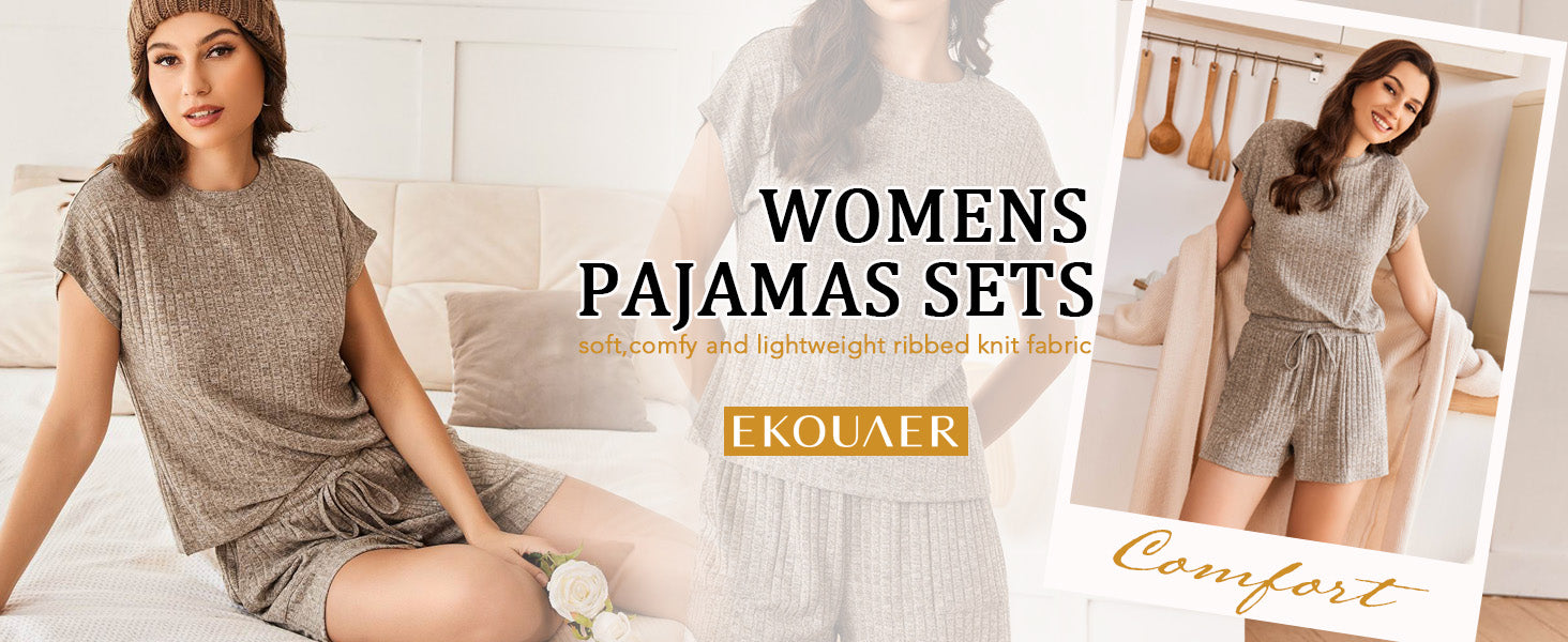 Ekouaer Pajamas Set for Women 2 Piece Pjs Ribbed Knit Lounge Set Cap Sleeve Loungewear Sleepwear