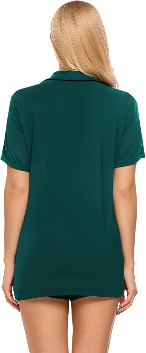 Ekouaer Pajamas Set for Women Short Sleeve Sleepwear Button Down Pjs Soft 2 Piece Lounge Sets