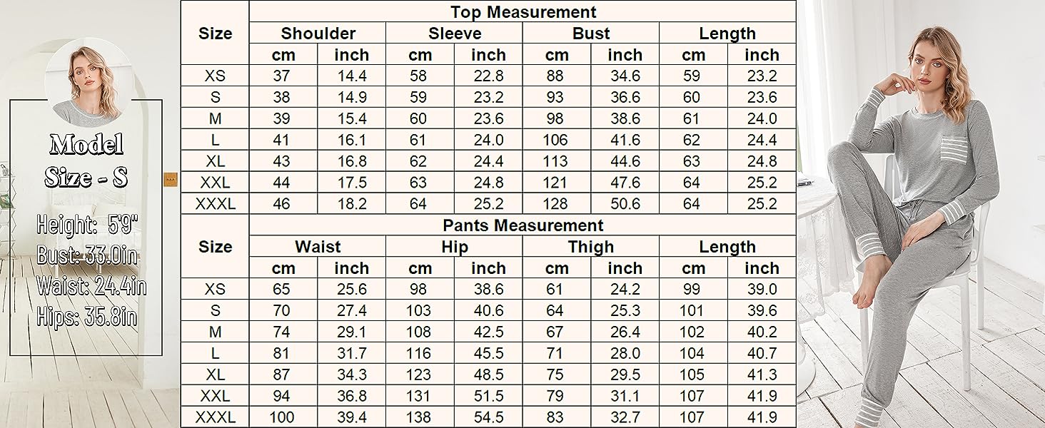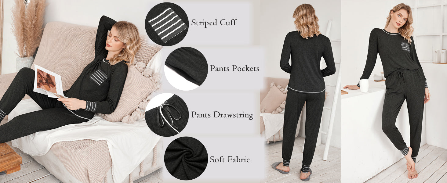 Ekouaer Pajamas Women's Long Sleeve Pj Set Soft 2 Piece Loungewear Sleepwear with Jogger Pants