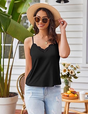 Ekouaer Satin Pajama Set for Women 2 Piece Silky Lingerie Sleepwear Lace Camisole Pj Shorts Set Soft Nightwear