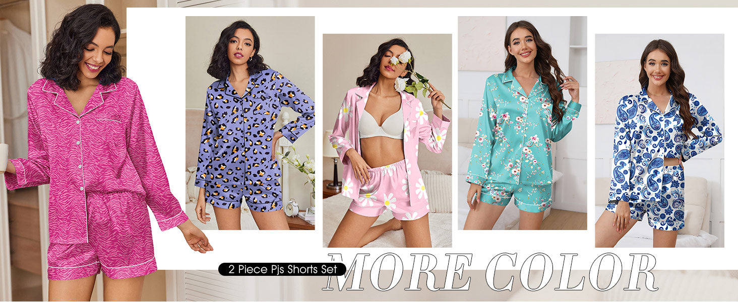 Ekouaer Satin Pajama Set for Women Button Down Pj Set Long Sleeve Top and Shorts 2 Piece Loungewear Summer Soft Sleepwear