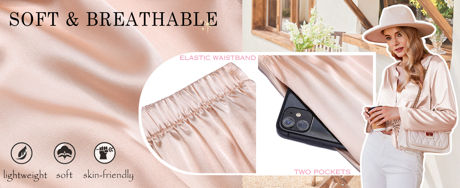 Ekouaer Silk Pajamas For Women 2 Piece Set Satin Pjs Long Sleeve Button Up Sleepwear Comfy Lounge sets