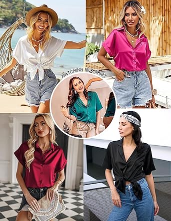 Ekouaer Silk Pajamas for Womens Set 2 Piece Satin Pjs Soft Button Down Sleepwear Wide Leg Long Pants with Pockets