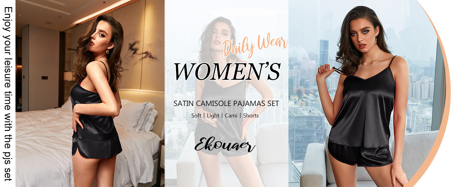 Ekouaer Silk Pjs for Women Satin Pajamas Set Lingerie Camisole Pajamas Cami Shorts Set Nightwear
