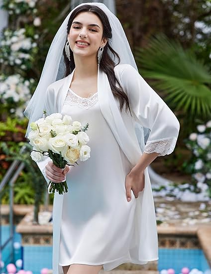 Ekouaer Sleepwear Women's Satin Nightgown with Robes Set 2 Piece Lace Cami Nightwear