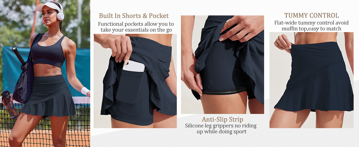 Ekouaer Tennis Skirts for Women Pleated Athletic Golf Skorts Skirt with Shorts Pockets Lightweight Running Workout Skirt