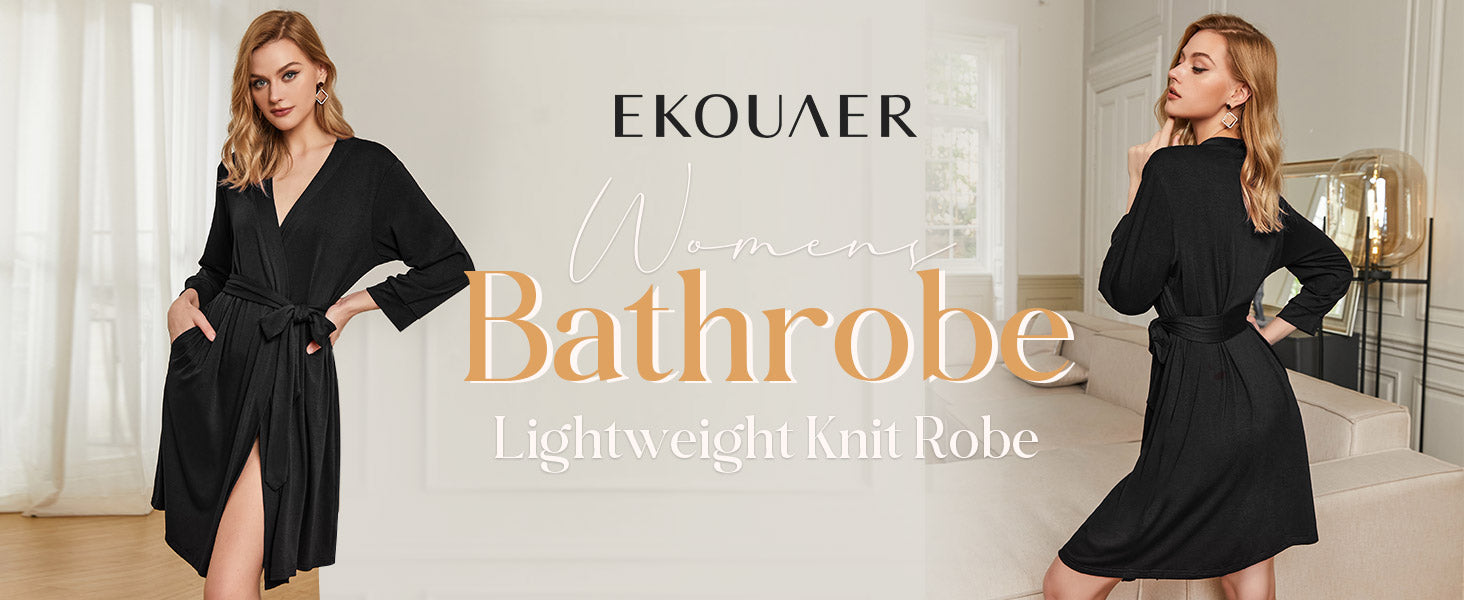 Ekouaer Women??s Robes Lightweight 3/4 Sleeve Short Knit Bathrobe Soft Knee Length Sleepwear Robes with Pockets