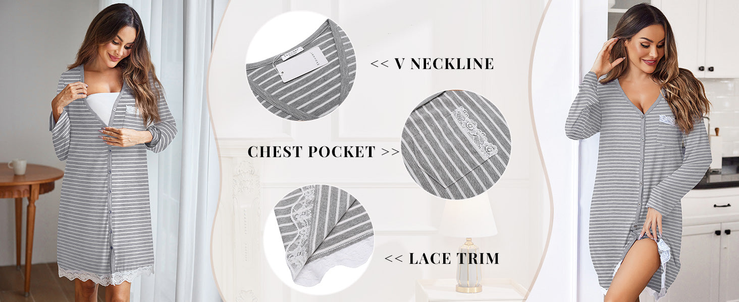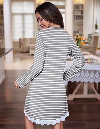 Ekouaer Women Striped Nightgowns Long Sleeve Button Down Sleepshirts Comfy Sleep Shirt