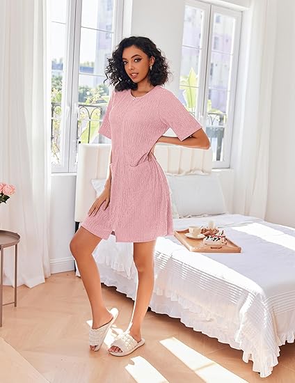 Ekouaer Women Zipper Robes Knit Short Bathrobe Lightweight House Coat with Pockets Soft Nightgown