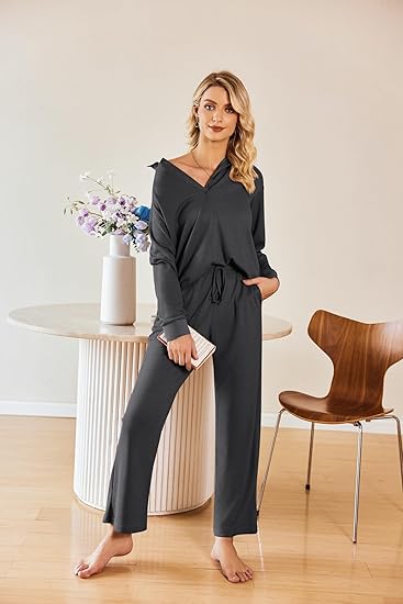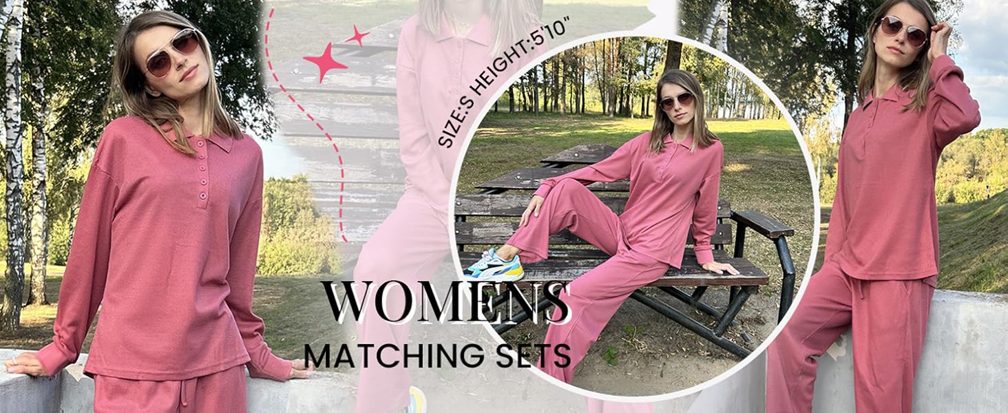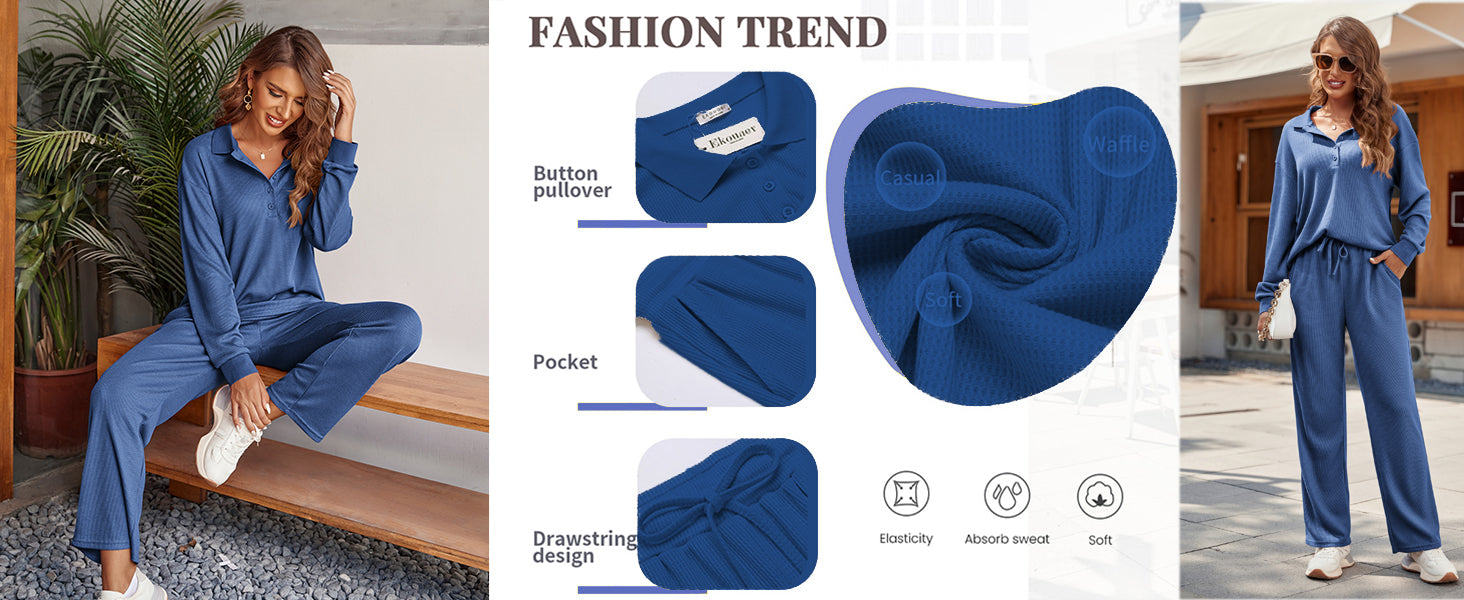 Ekouaer Womens 2 Piece Matching Lounge Sets Fall Outfits 2025 Sweatsuit Waffle Knit Pajamas Sets Long Sleeve Sweater Clothes