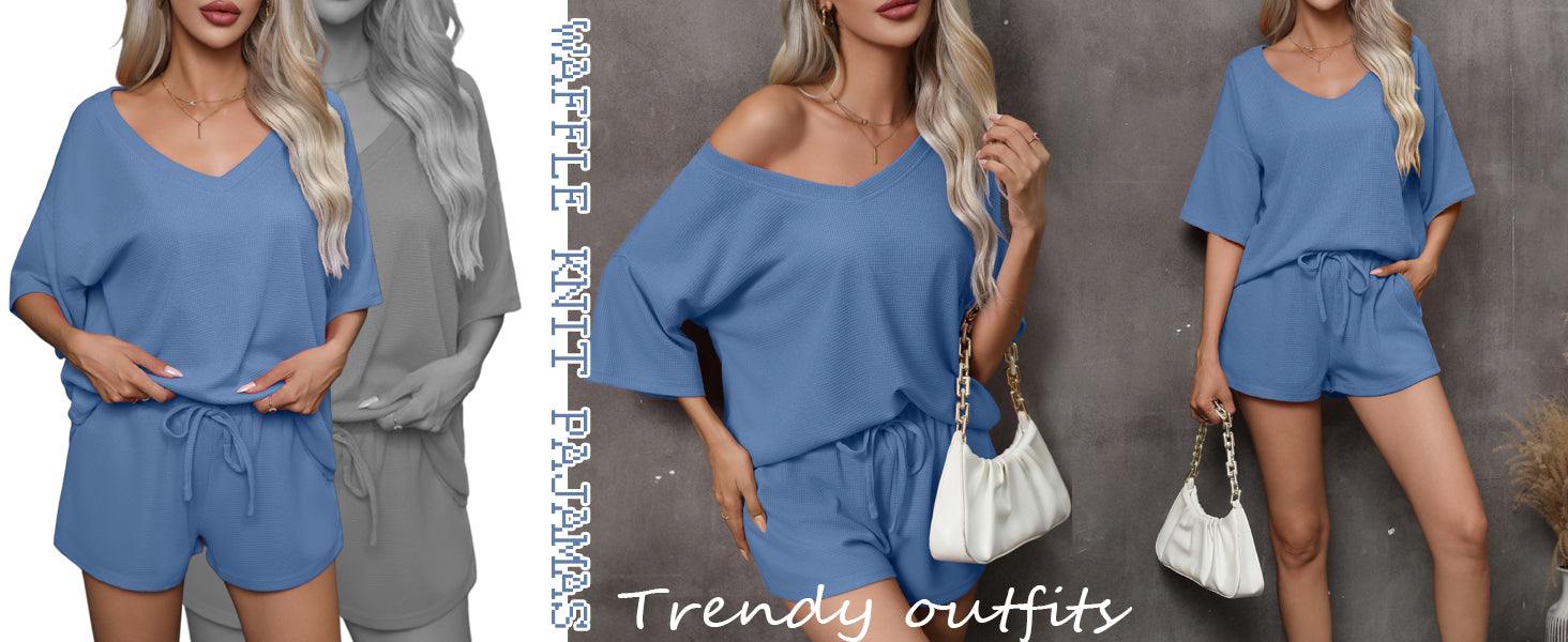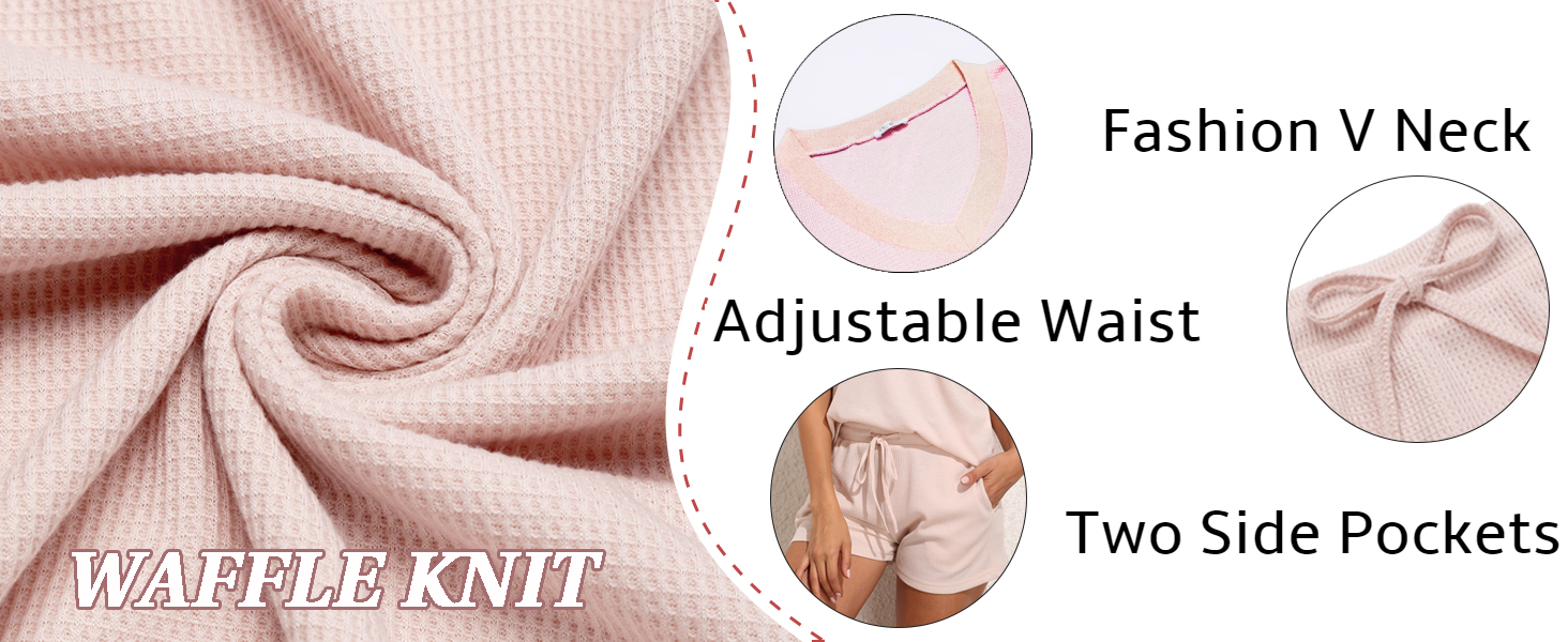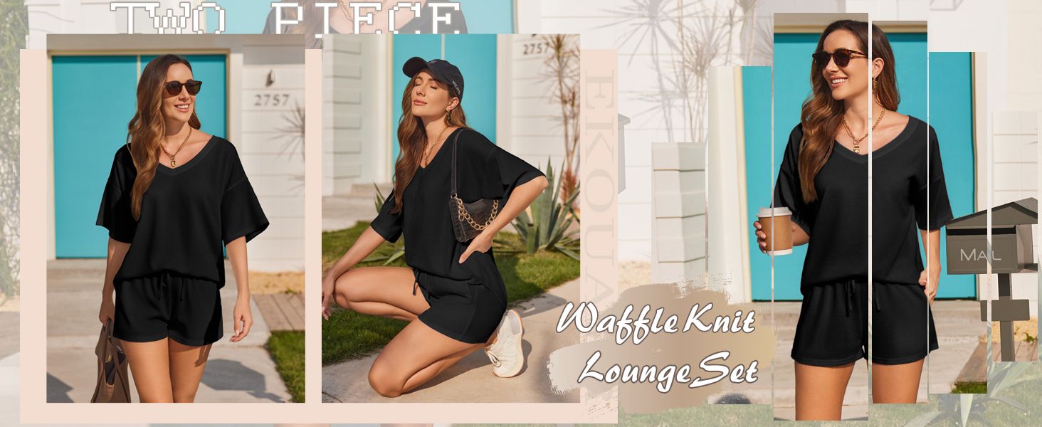 Ekouaer Womens 2 Piece Short Sleeve Waffle Knit V Neck Off Shoulder Casual Loose Fit Sweatsuit Outfits