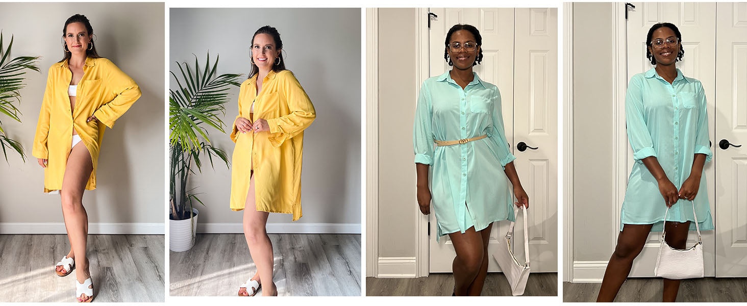 Ekouaer Women's Beach Bikini Cover-up Long Roll-up Sleeve Beach Shirt Bathing Suit Cover Up