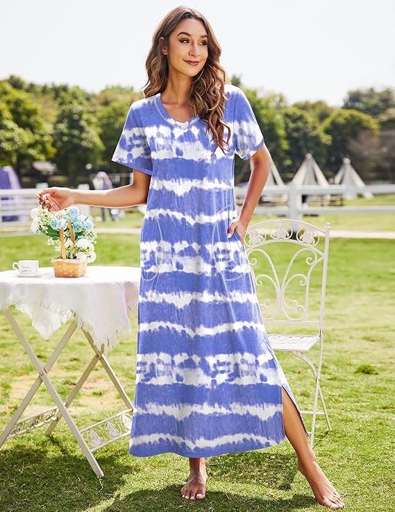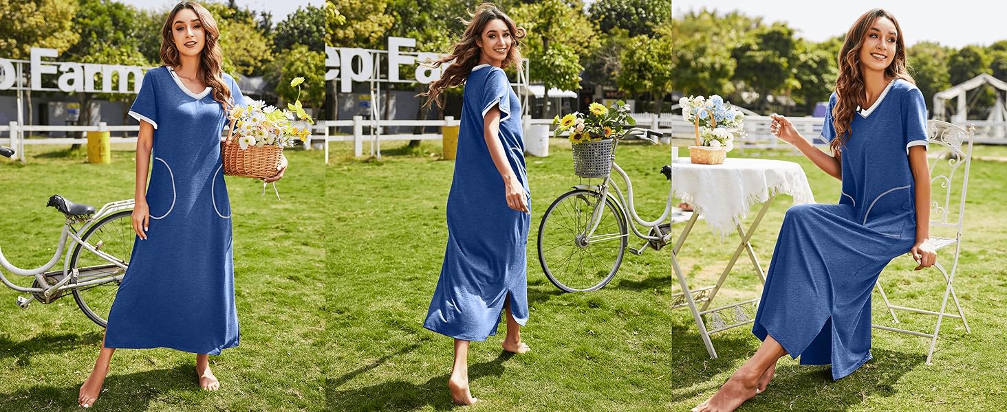 - LOOK ELEGANT & LUXURY: Smooth and soft as silk but more durable, performance in breathable cotton and polyester. Deep V Neckline, Full Length with pockets style of this nightshirt is elegantly oversized, giving you a dramatic and elegant look. Lounge in style and feel like royalty every day in this soft and comfortable sleeping dress.
