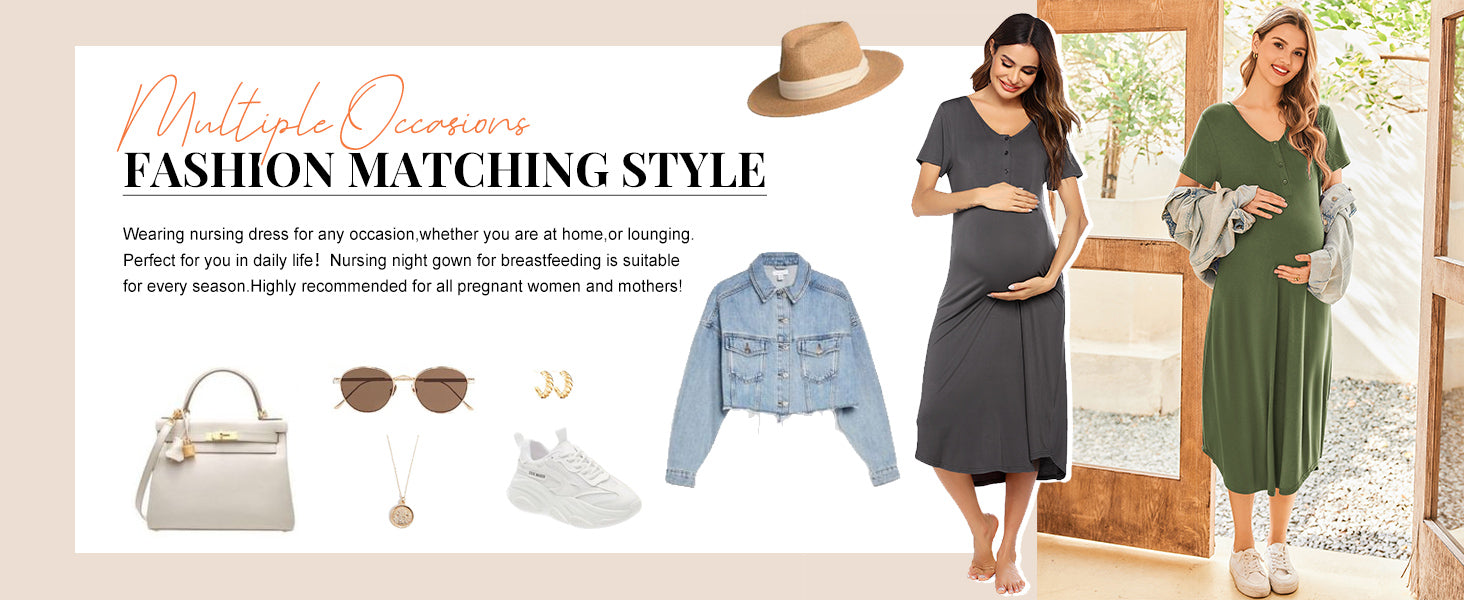 Ekouaer Womens Maternity Nightgown for Hospital Pregnancy Long Nightgowns Nursing Night Gown for Breastfeeding Army Green M