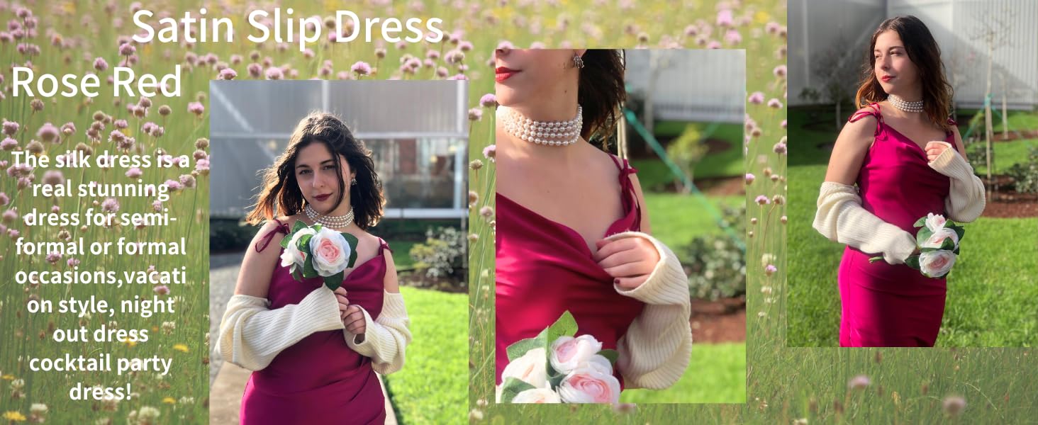 Ekouaer Women's Nightgown Satin Slip Dress Lingerie Sleepwear Long Slip Silk Midi Dress Spaghetti Strap