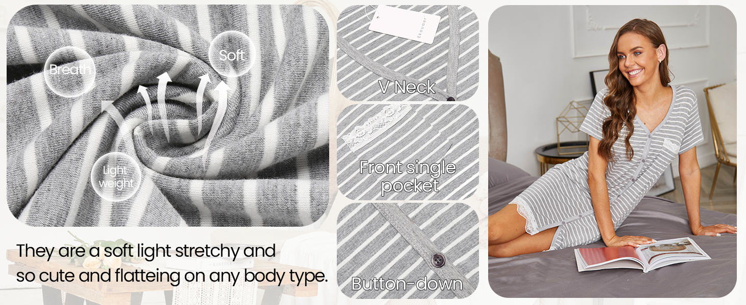 - ??Fit Occasion??: This basic nightgown with stripes and buttons is perfect suit for more casual occasions. such as Maternity Nightgowns,Postoperative care???????¡§???o?Pajama Party, Lounging Room,Travel, Holiday, ect.