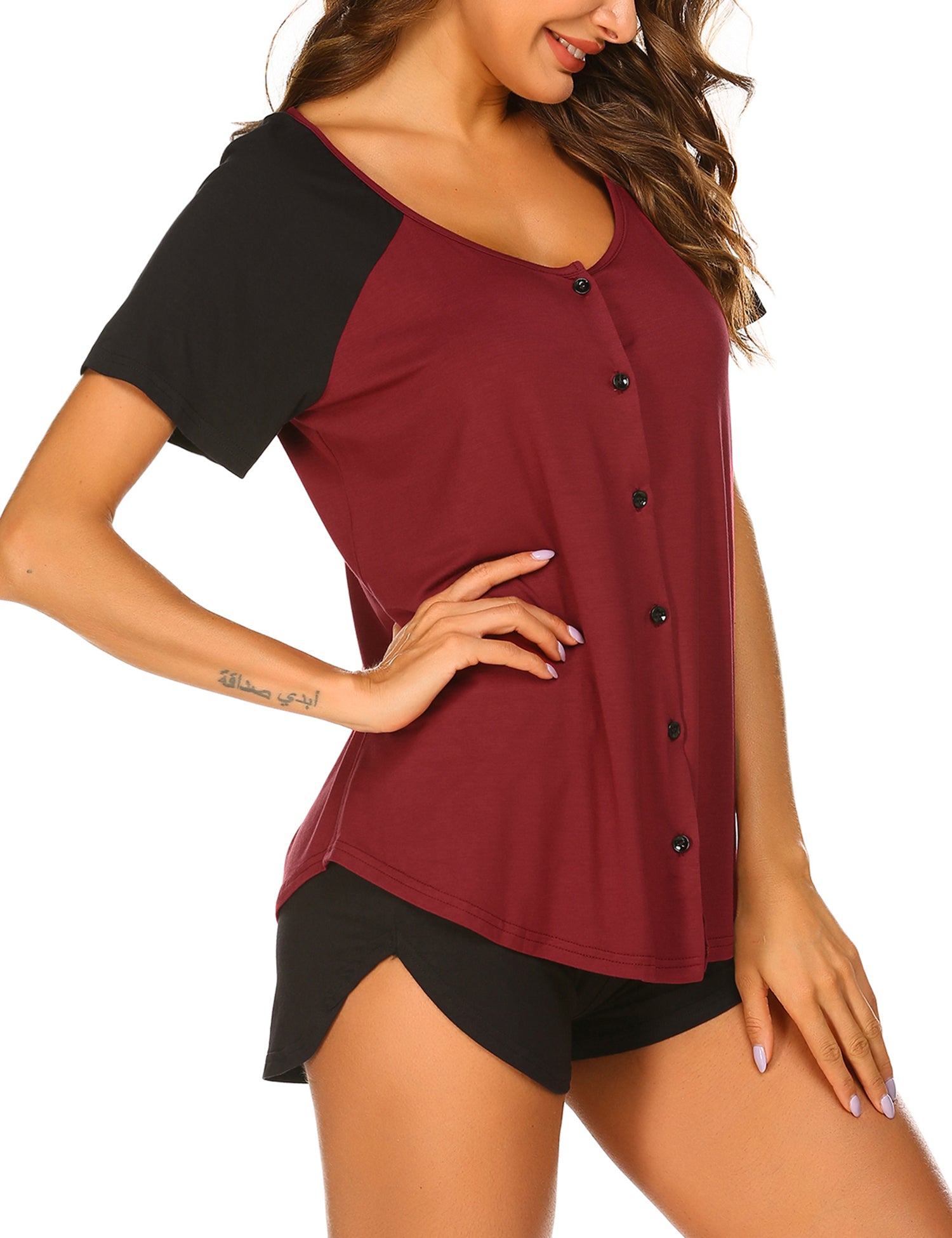 - Two-Piece Pajama Set comes with a button-down top and cute boxer short. Short sleeve sleep shirt features button-front PJs style, round collar, contrast color trimmed at the cuff, classic and convenient designs make this pjs sets more stylish and unique. This womens pjs has a loose fit for added comfort. Extra soft, comfy, and breathable sleepwear set for bedtime. A comfortable set of pajamas makes downtime even sweeter, choose the right pj set to get your best night's sleep