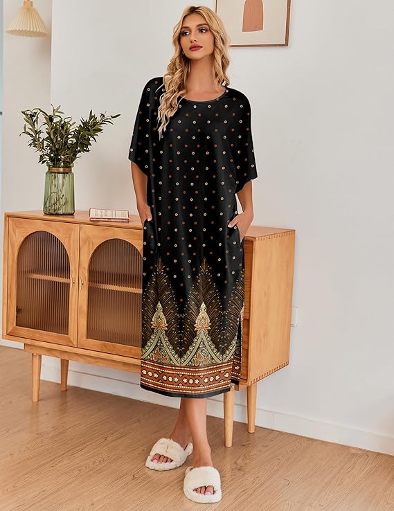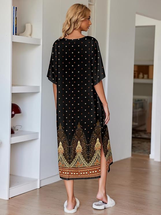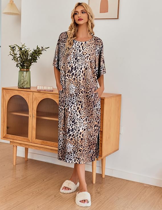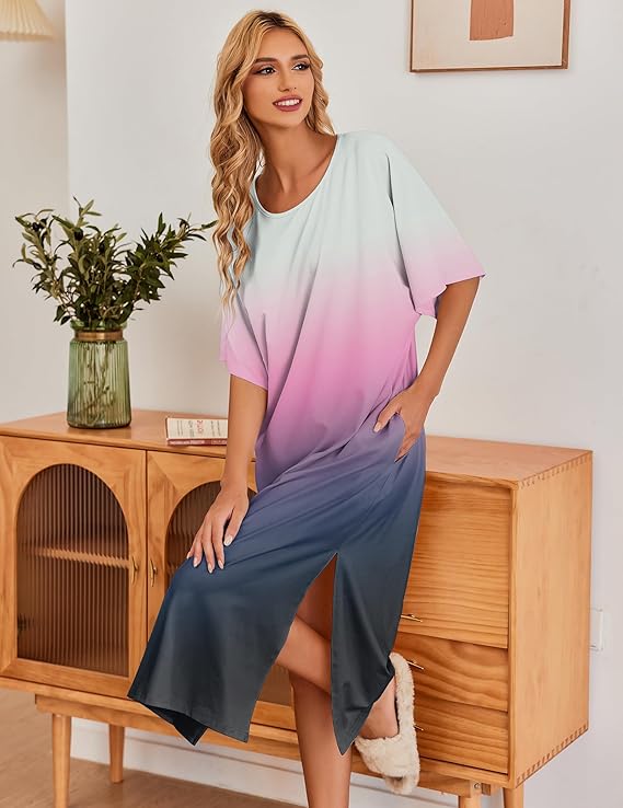 - Ekouaer nightgown featuring oversized long loungewear design,pure color,round neck nightshirt,half sleeve sleepwear and long lounger dress with pockets and side split.So different unique and comfort pajama dress