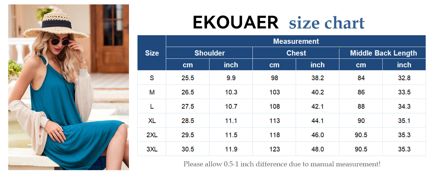Ekouaer Womens Nightgown Sleeveless Sleepwear V Neck Racerback Sleep Dress Black