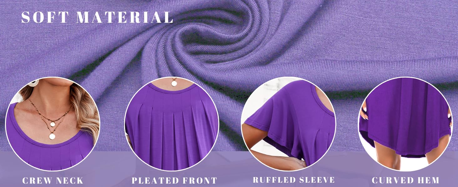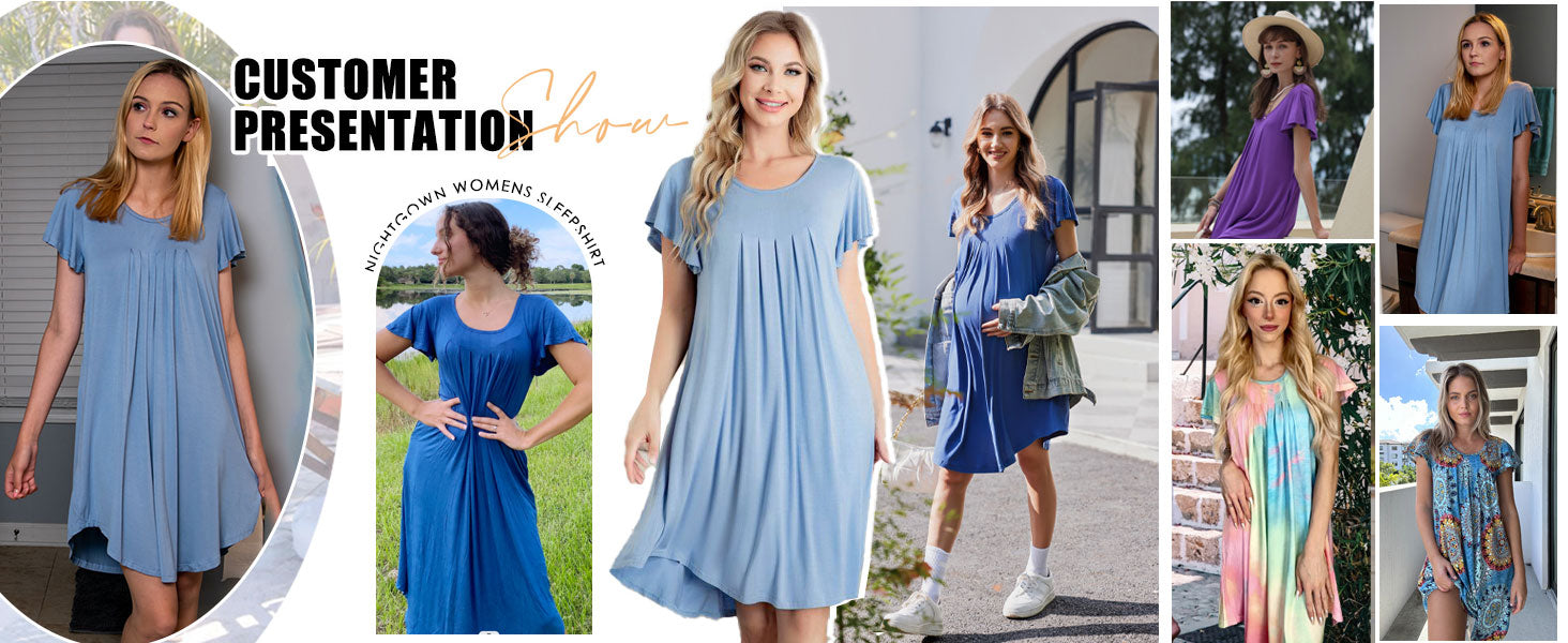Ekouaer Womens Nightgown Soft Sleepwear Pleated Sleepshirt Sleep Dress Short Sleeve Nightdress