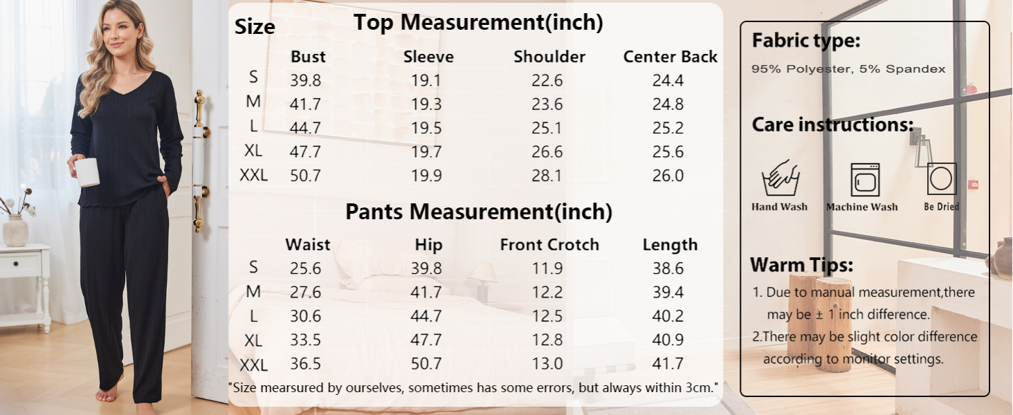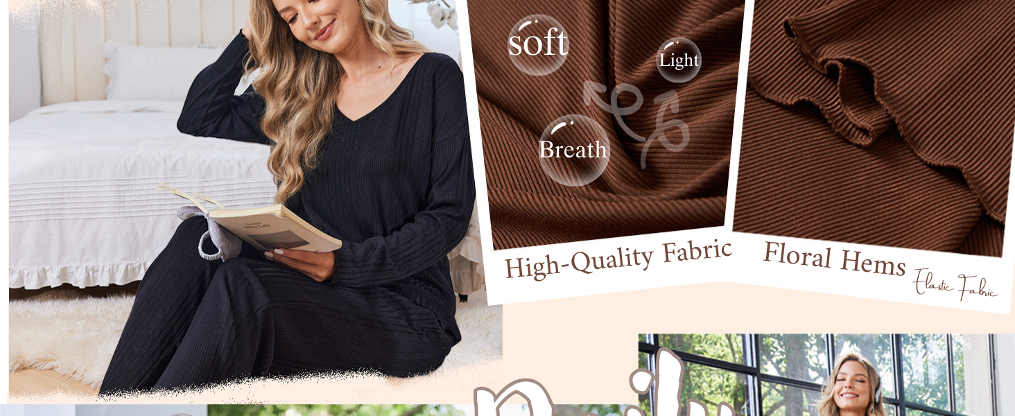 Ekouaer Womens Pajama Set Ribbed Knit PJs 2 Piece Lounge Set Long Sleeve Top and Pants Comfy Sleepwear with Pockets Red Purple M