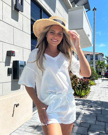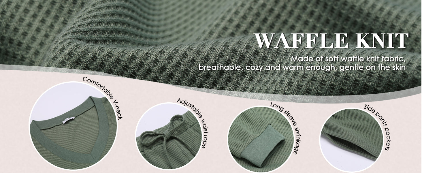 Ekouaer Womens Pajama Set Waffle Knit Lounge Set V Neck Off Shoulder Sleepwear Long Sleeve Top and Shorts 2 Piece Sweatsuit