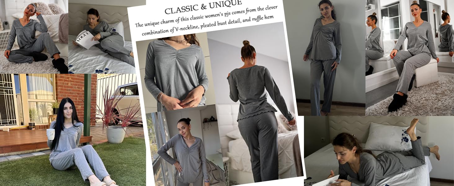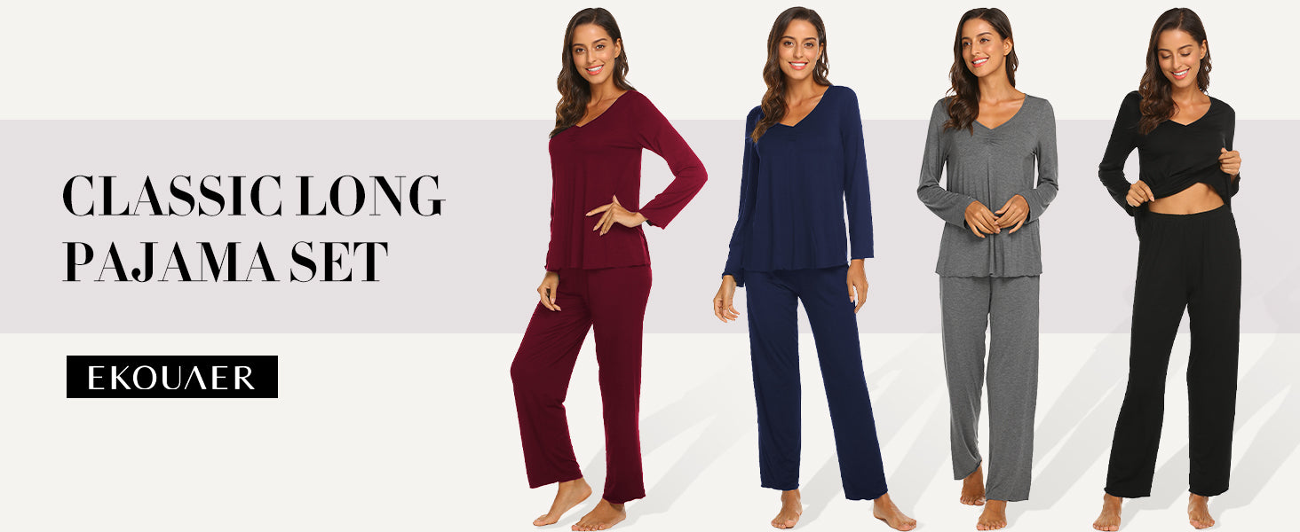Ekouaer Womens Pajama Sets 2 Piece Lounge Set Fall Winter Pajamas Long Sleeve Pjs Top and Pants Soft Pj Sets Loose Sleepwear