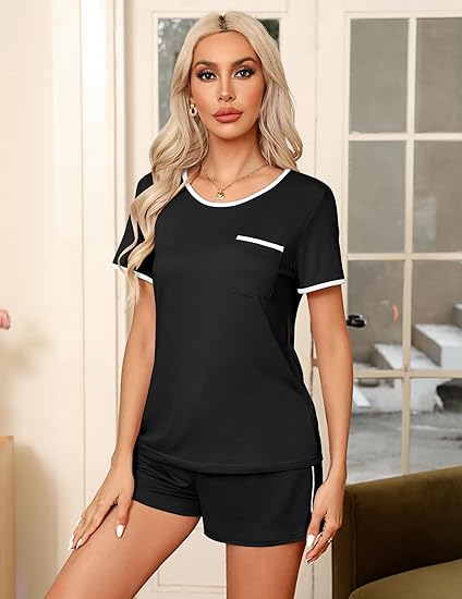 Ekouaer Womens Pajama Sets 2 Piece Soft Short Sleeve Top and Shorts Sleepwear Round Neck Pjs Lounge Set with Pockets