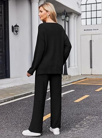 Ekouaer Womens Pajama Sets Fuzzy Fleece Sleepwear Long Sleeve Pjs 2 Piece Lounge Set Fall Outfits Sweater Nightwear