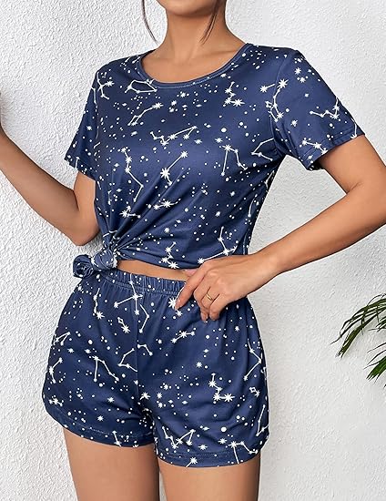 Ekouaer Women's Pajama Sets Short Sleeve Pjs 2 Piece Top and Shorts Sleepwear Comfy Soft Lounge Sets with Pockets