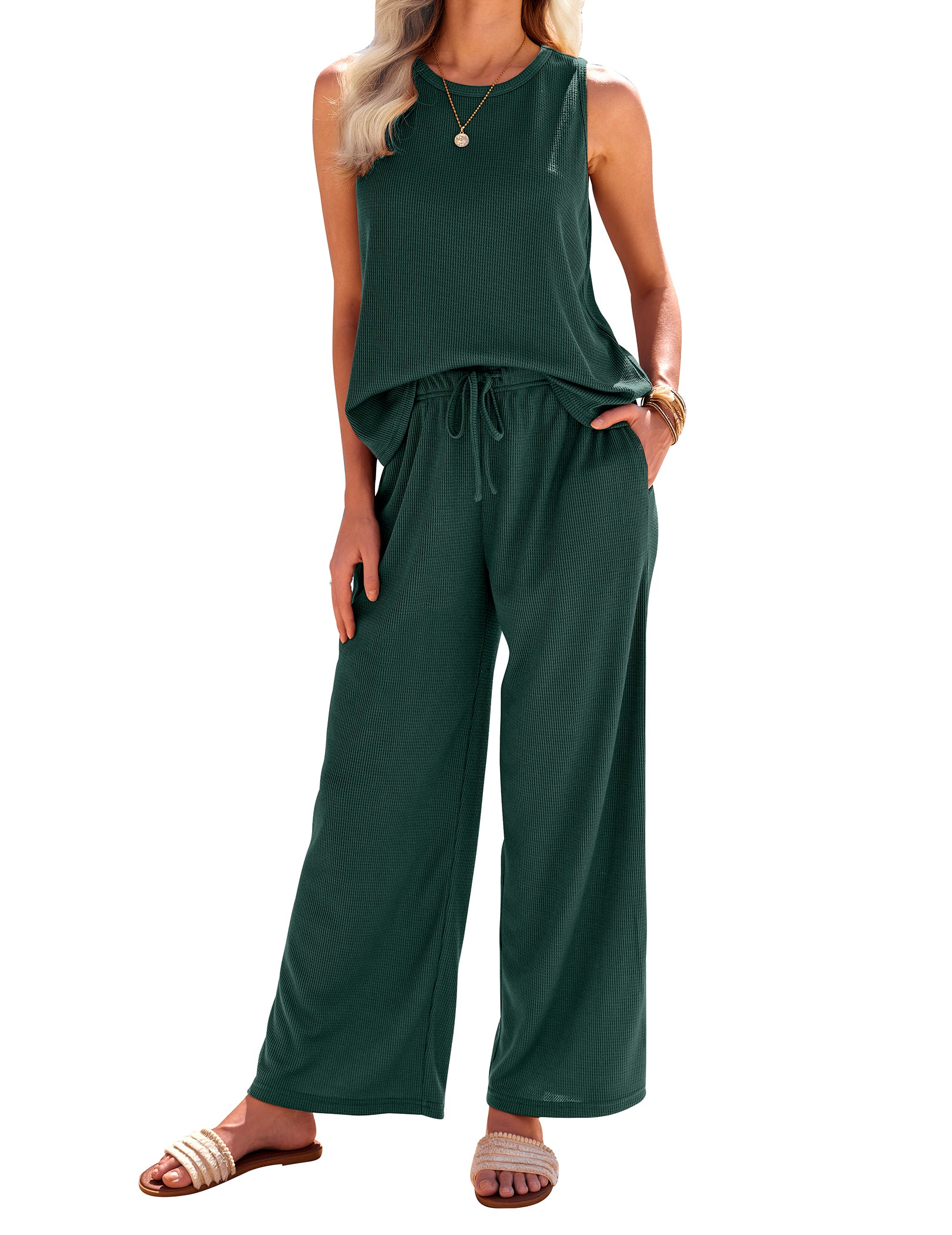 Ekouaer Womens Pajamas 2 Piece Lounge Set Waffle Knit Loungewear Sleeveless Tank Top with Long Pants Outfits