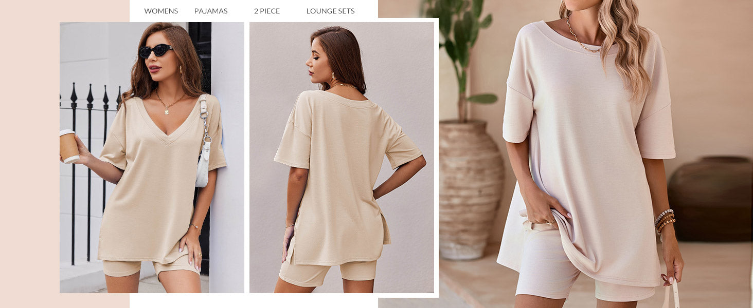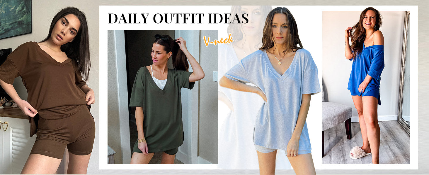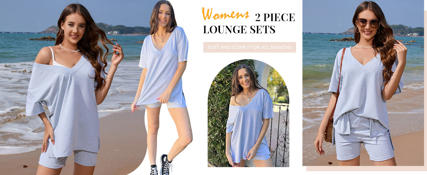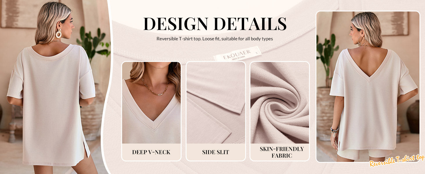 Ekouaer Womens Pajamas 2 Piece Lounge Sets Oversized V Neck T-Shirts Tops Biker Shorts Set Workout Reversible Tracksuit