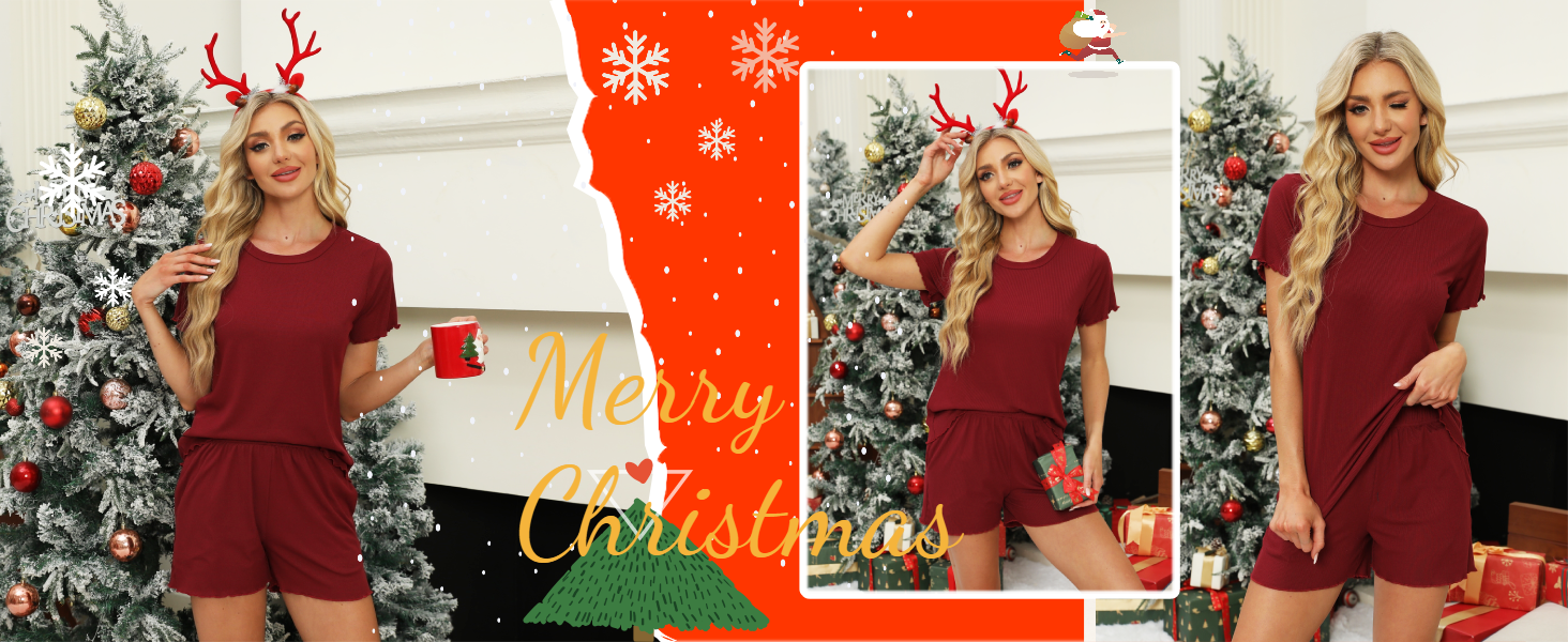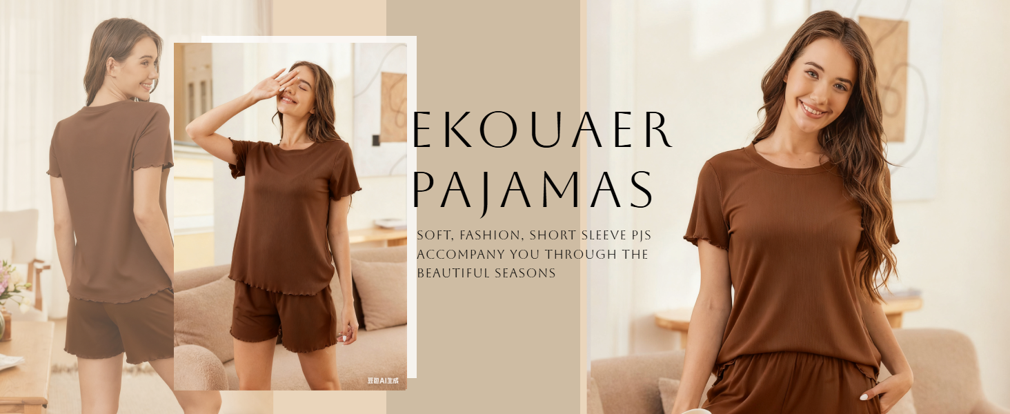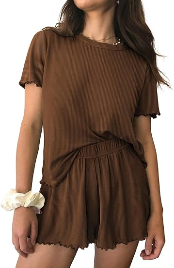 Ekouaer Womens Pajamas 2 Piece Ribbed Knit Pjs Short Sleeve Sleepwear Set Summer Soft Pajamas Set Casual Lounge Sets