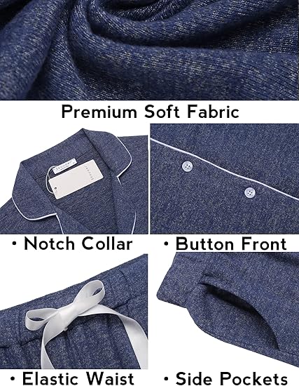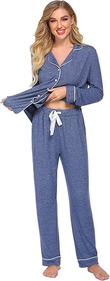 Ekouaer Women's Pajamas Long Sleeve Sleepwear Casual Button Down Loungewear Soft Pjs Set