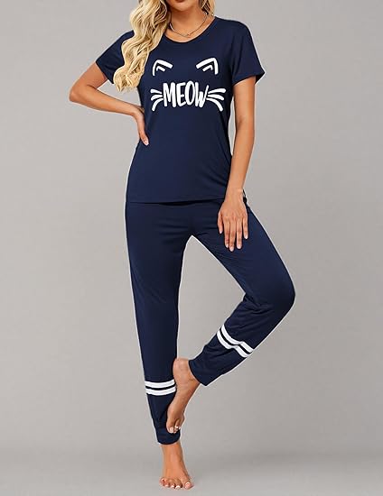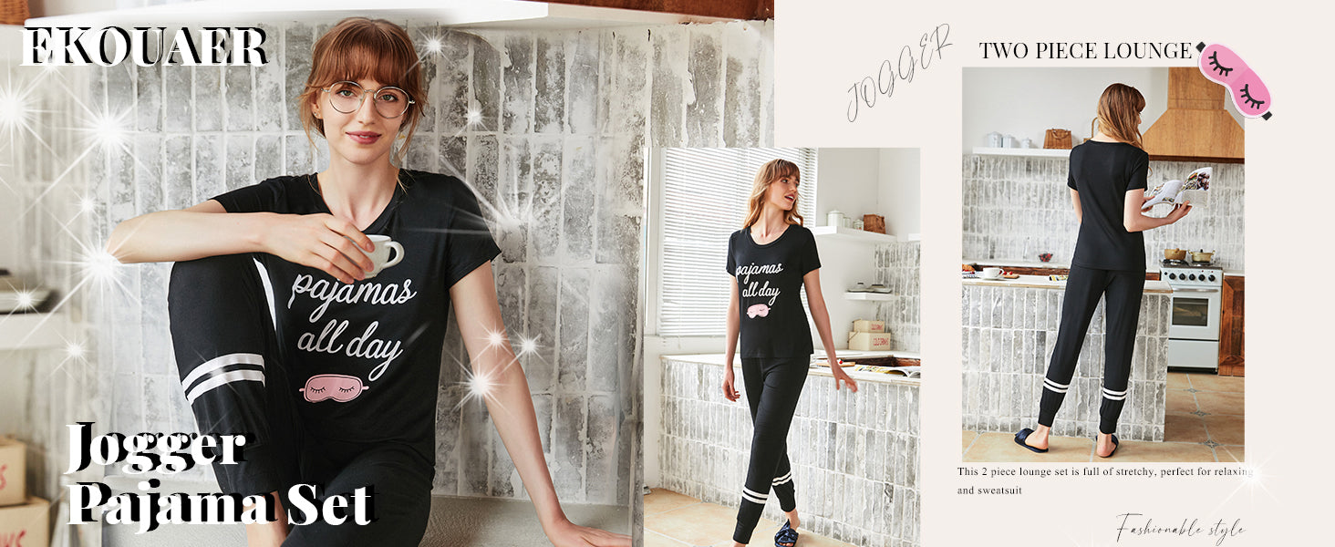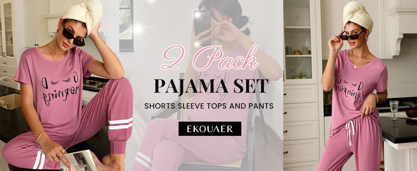 Ekouaer Womens Pajamas Set 2 Piece Lounge Pj Set Short Sleeve Sleepwear Tops with Joggers Pants Loungewear Print Nightwear